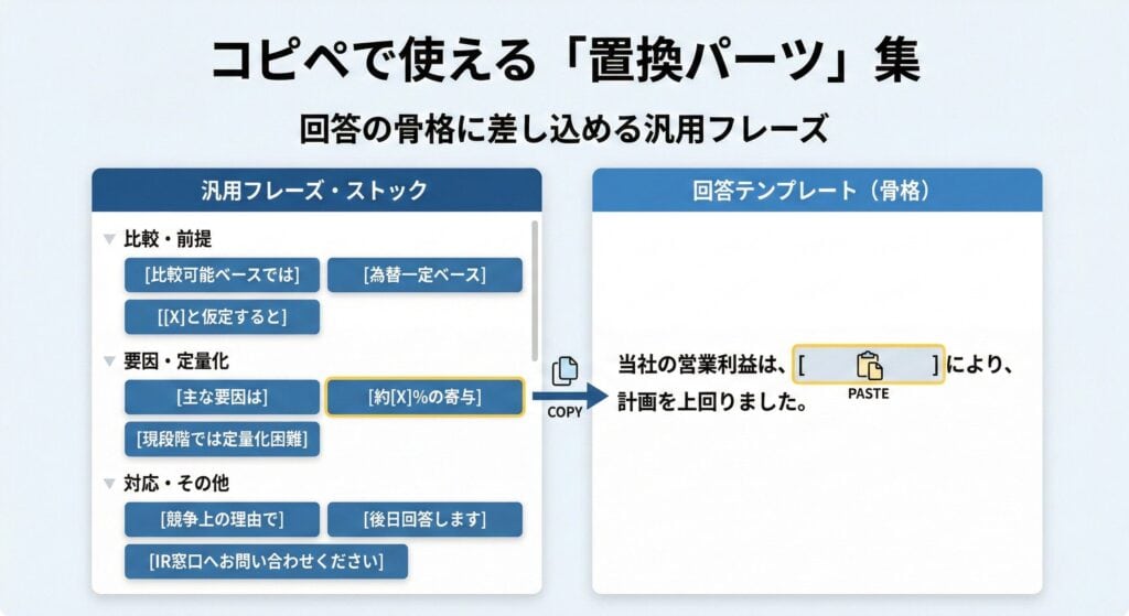 回答の骨格に差し込める汎用フレーズを整理します。