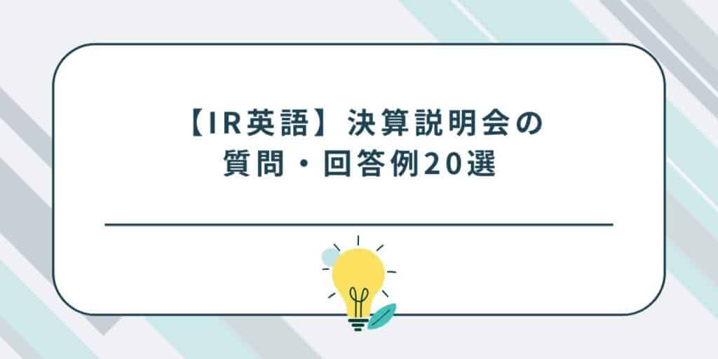 【IR英語】決算説明会の質問・回答例20選